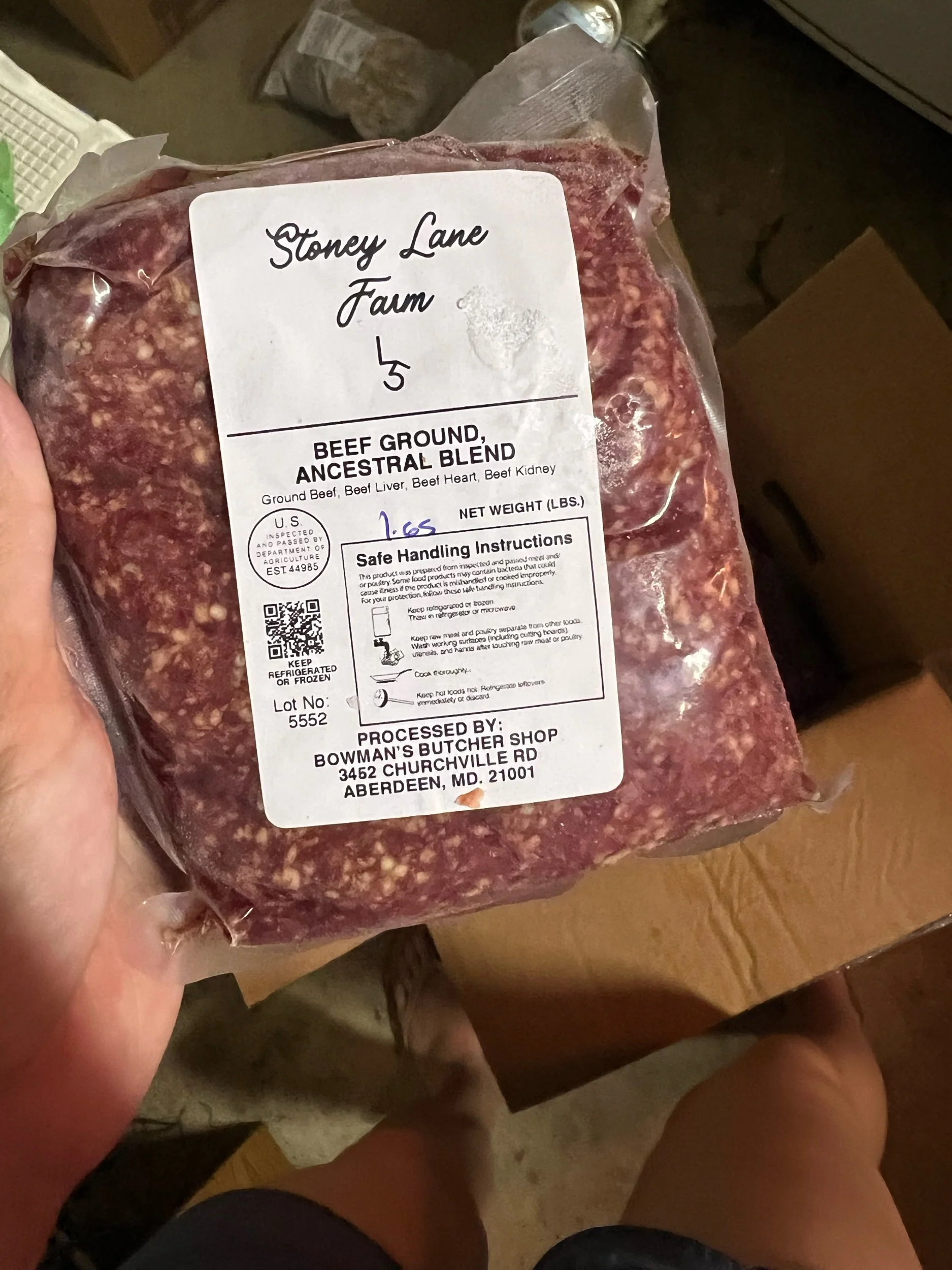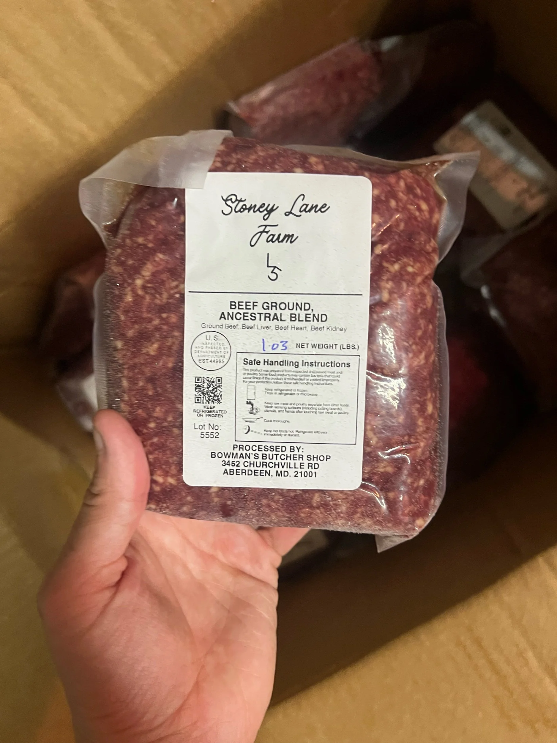 Beef Categories: Select a Category Ground Beef Steaks Ribs & Brisket Bones & Offal Roasts Beef Ground Beef | Steaks | Ribs & Brisket | Bones & Offal | Roasts | Ancestral Ground Beef Blend- 1 Pound $15.00 Add To Cart Added! Ground Beef - 1 Pound $12.00 Sold Out Sold Out Added! Ground Beef - 25 Pounds Sale Price: $250.00 Original Price: $300.00 Sold Out Sold Out Added! Ground Beef - 50 Pounds Sale Price: $500.00 Original Price: $600.00 Sold Out Sold Out Added! Fall Steak Box $189.00 Limited Availability Add To Cart Added! Ground Beef - 100 Pounds Sale Price: $900.00 Original Price: $1,200.00 Sold Out Sold Out Added!