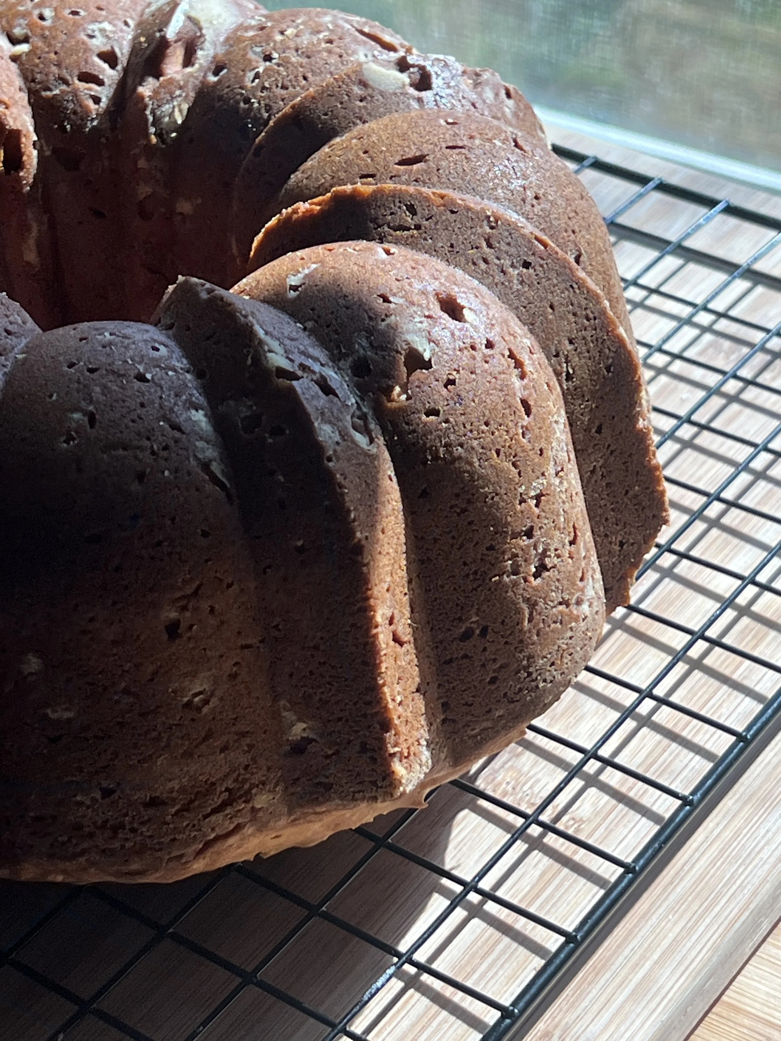 Preheat oven to 325°F. Coat a 10 cup bundt pan with nonstick spray OR coat with soft butter and lightly dust with flour, tapping off excess. Set aside.